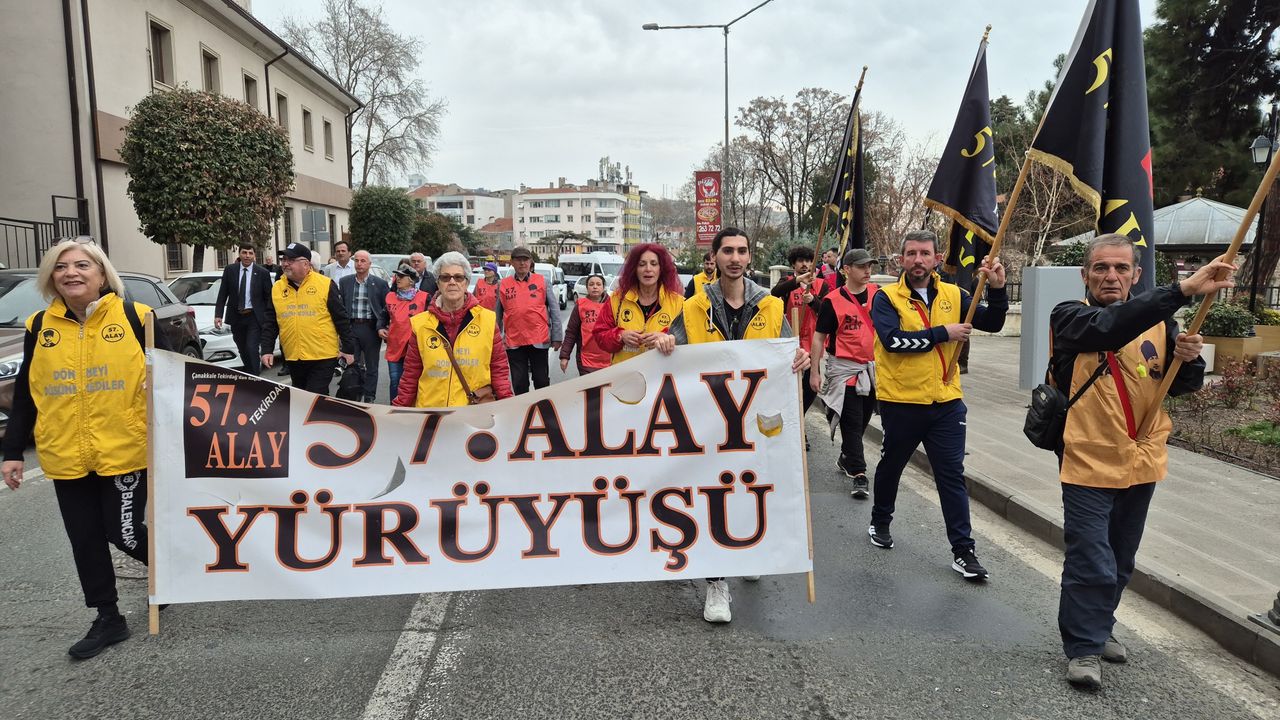 Çanakkale Savaşı’nda kahramanlıklarıyla destanlaşan 57. Alay’ı anmak amacıyla düzenlenen yürüyüş, Tekirdağ Valiliği önündeki çelenk sunma töreniyle başladı. Atatürk Anıtı’na çelenk sunulmasının ardından Tekirdağ Valisi Recep Soytürk’ün de katıldığı törenle yürüyüş heyeti Çanakkale’ye uğurlandı.