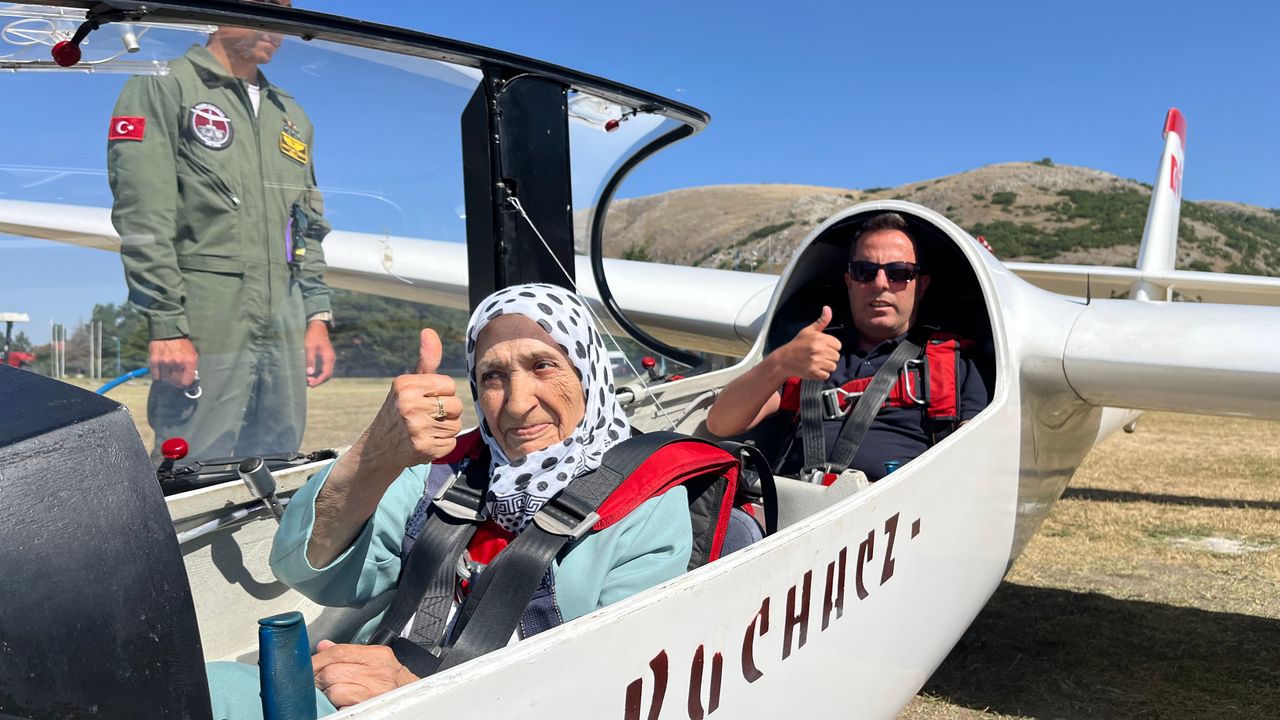 Geçmişte tır kullanan ve Avrupa'ya mal dahi taşıyan 83 yaşındaki Mürüvvet Dibsoy, girişimler ve alınan izinler sonucunda Türk Hava Kurumu (THK) İnönü Havacılık Eğitim Merkezi'ne geldi. Burada son kontrolleri yapılan Dibsoy, planörün kokpitine Kurumun Planör Uçuş Okulu Müdürü Murat Hozan ile birlikte oturdu. Müdür Hozan eşliğinde planörle kalkış yapan Mürüvvet Türksoy'un heyecanın, kokpitteki aksiyon kamerasına anbean yansıdı. 700 metre yüksekliğe kadar çıkan Mürüvvet Dibsoy, Okul Müdürü Murat Hozan rehberliğinde manzaranın tadını çıkardı. İnişin ardında huzurevinden arkadaşları ve Müdüresi Seyhan Şimşek tarafından alkışlarla karşılandı.