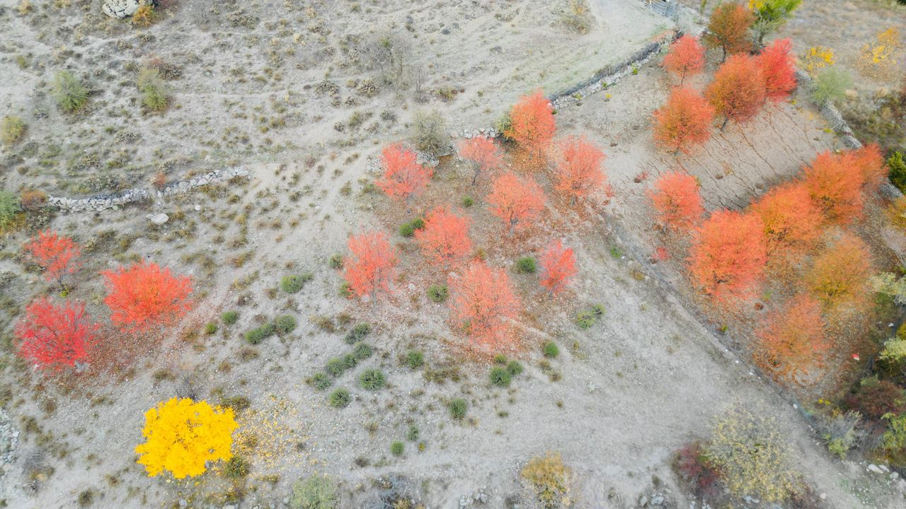 Afyonkarahisar'da sonbahar mevsiminin tüm güzellikleri yaşanmaya devam ederken, Büyükkalecik bölgesinde çekilen bir görüntü ise görenleri adeta mest etti. Renklerin cümbüşünün yaşandığı görüntülerde ortaya çıkan manzara ise adeta yağlı boya tablolarını taş çıkarttı.