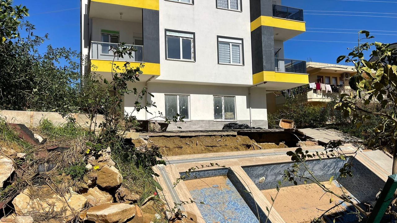 Antalya'nın Alanya ilçesinde, bir apartmanın bahçesinde bulunan yüzme havuzun toprak zeminle birlikte çökmesi sonucu 7 katlı binada yaşayan 8 aile tedbir amaçlı tahliye edildi.