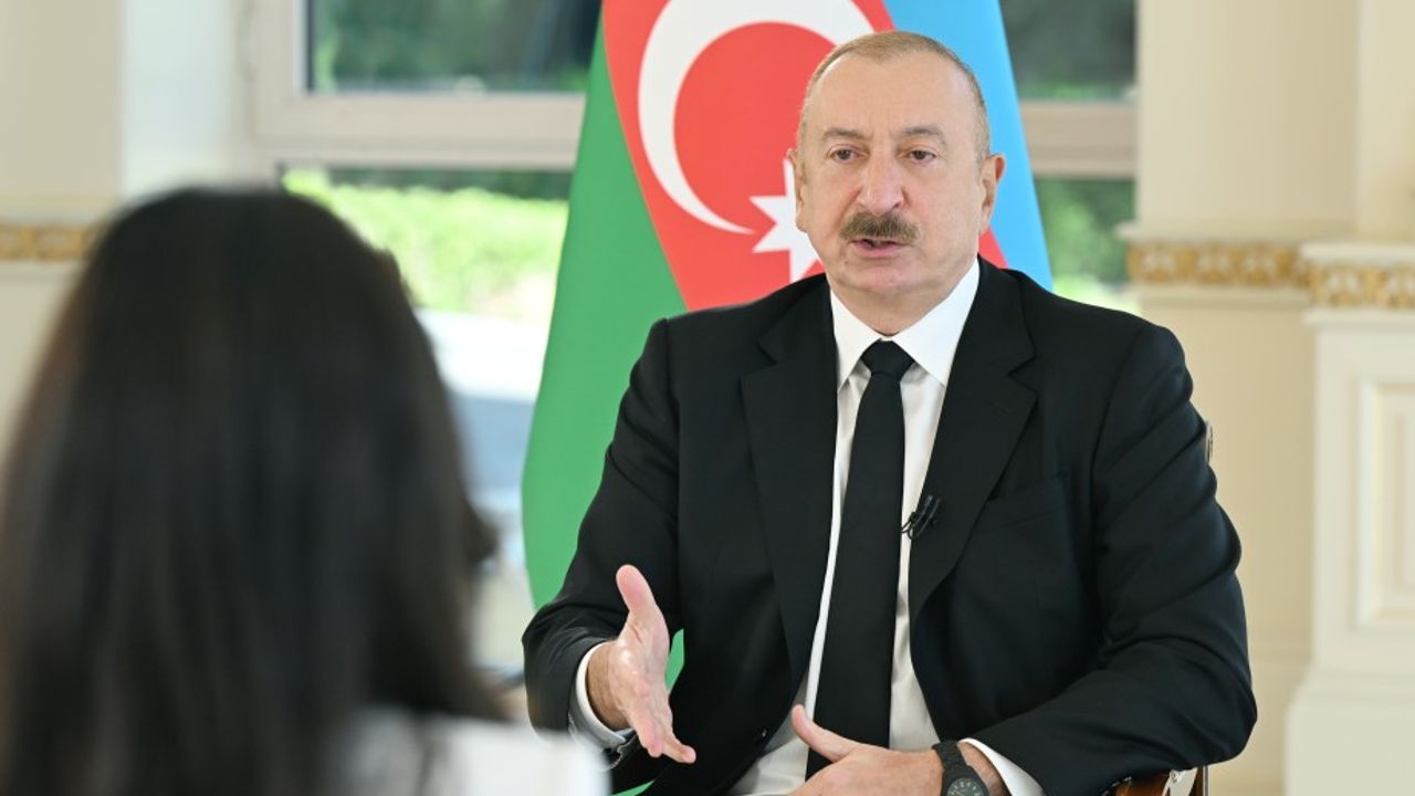 İsrail ile Suriye arasında ilişkilerin normalleşmesi için imkanlar olduğunu dile getiren Aliyev, "Öncelikle, Suriye’ye doğal gaz tedariki ile ilgili konuşmak isterim. Biliyorsunuz ki, Esad’ın hükümetiyle bizim 10 yıldan fazla hiçbir ilişkimiz olmadı. Onlar Azerbaycan’a çok adaletsiz davrandılar, Ermenistan’la olan anlaşmazlıklarımızda Ermenistan’ın tarafına geçtiler. Bu da bizim için çok garipti, çünkü işgal yılları boyunca Müslüman ülkelerden çok güçlü destek aldık ve İslam İşbirliği Teşkilatı (İİT) bize her zaman destek oldu. Azerbaycan, İslam dayanışması ilkelerine yüksek değer veren bir ülkedir. Dolayısıyla Azerbaycan’a karşı Ermenistan’la camileri yıkan, orada domuz ve inek besleyen bir ülkeyle aynı safta olmak bizim için kabul edilemezdi. Esad’ın döneminde 10 yılı aşkın süredir tüm diplomatik ilişkileri kesmiştik. Suriye’de yeni bir hükümet iktidara geldiğinde bunu büyük bir memnuniyetle karşıladık ve şüphesiz ki destekledik. Bu yılın Nisan ayında Türkiye’de Ahmed eş-Şara ile bir görüşmem oldu ve onu ziyarete davet ettim. O da Azerbaycan’a resmi bir ziyaret gerçekleştirdi. Suriye'ye insani yardım etmeye başladık. Suriye’ye nasıl faydalı olabileceğimizi, onlar için neler yapabileceğimizi öğrenmek amacıyla Başbakan Yardımcısının başkanlık ettiği büyük bir heyeti oraya gönderdim. Uzun yıllar boyunca acı çekmiş bu ülke ve onun halkı için yalnızca barış istiyoruz. Onların barış içinde yaşamalarını ve orada kalkınmayı görmeyi arzuluyoruz. Böylece çalışmalar başladı. Daha sonra elektrik enerjisi kıtlığı meselesi dikkatimizi çekti ve nasıl yardımcı olabileceğimizi düşünmeye başladık" dedi.