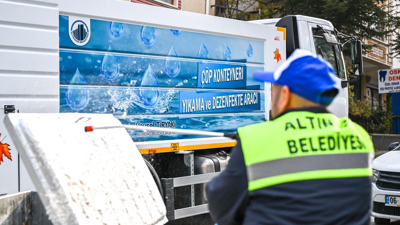 Altındağ Belediyesi, temizlik seferberliği kapsamında hizmete giren “Çöp konteyneri yıkama aracı” ile mahallelerdeki konteynerleri bulunduğu yerde yıkayıp ilaçlayarak tertemiz hale getiriyor.