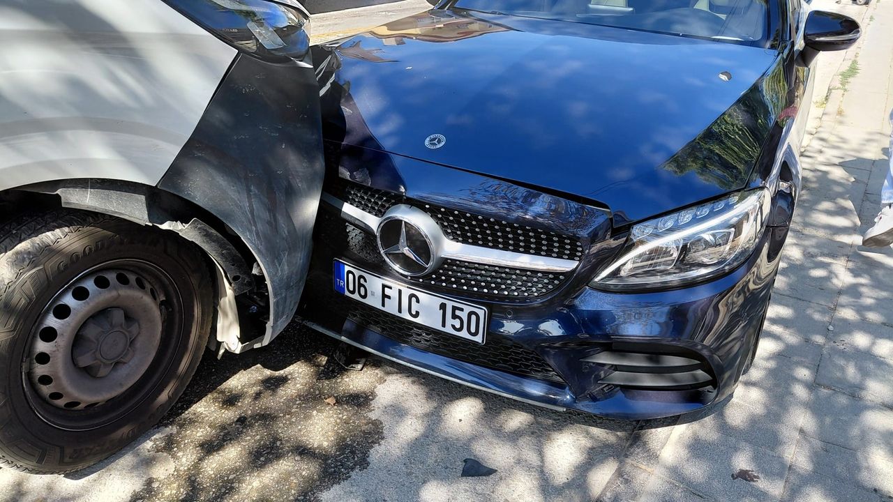 Ankara'da ara sokaktan çıkan otomobille o esnada sollama yapan ticari aracın kafa kafaya çarpışması sonucu iki araç sürücüsü yaralandı.