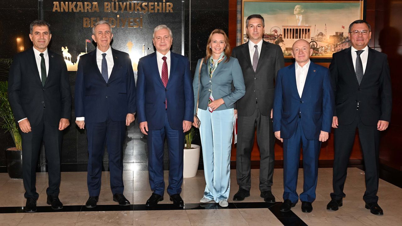 Ankara Büyükşehir Belediye Başkanı Mansur Yavaş, Moskova Belediye Başkanı Sergey Sobyanin ve beraberindeki heyeti kabul ederek, iki şehir arasında dostluk ve iş birliği protokolünü imzaladı. Protokol, belediyeler arası bilgi ve tecrübe paylaşımı ile kentsel hizmetlerin kalitesini artırmayı hedefliyor.