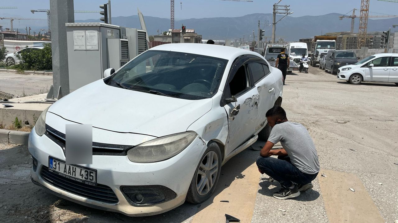 Kaza, Antakya ilçesi Akasya Mahallesi 75. Yıl Bulvarı'nda yaşandı. Trafik ışıklarının yeşile dönmesiyle birlikte hareket eden 01 ATT 121 plakalı hafriyat kamyonu ile 31 AAH 435 plakalı otomobille çarpıştı. Kazada kamyonun kör noktasına denk gelen otomobil, refüje sürüklendi. Yararlanın olmadığı kaza anbean güvenlik kamerasına yansırken görüntülerde kaldırımda bekleyen vatandaşın anlık refleksle araçların altında kalmaktan son anda kurtulduğu görüldü.