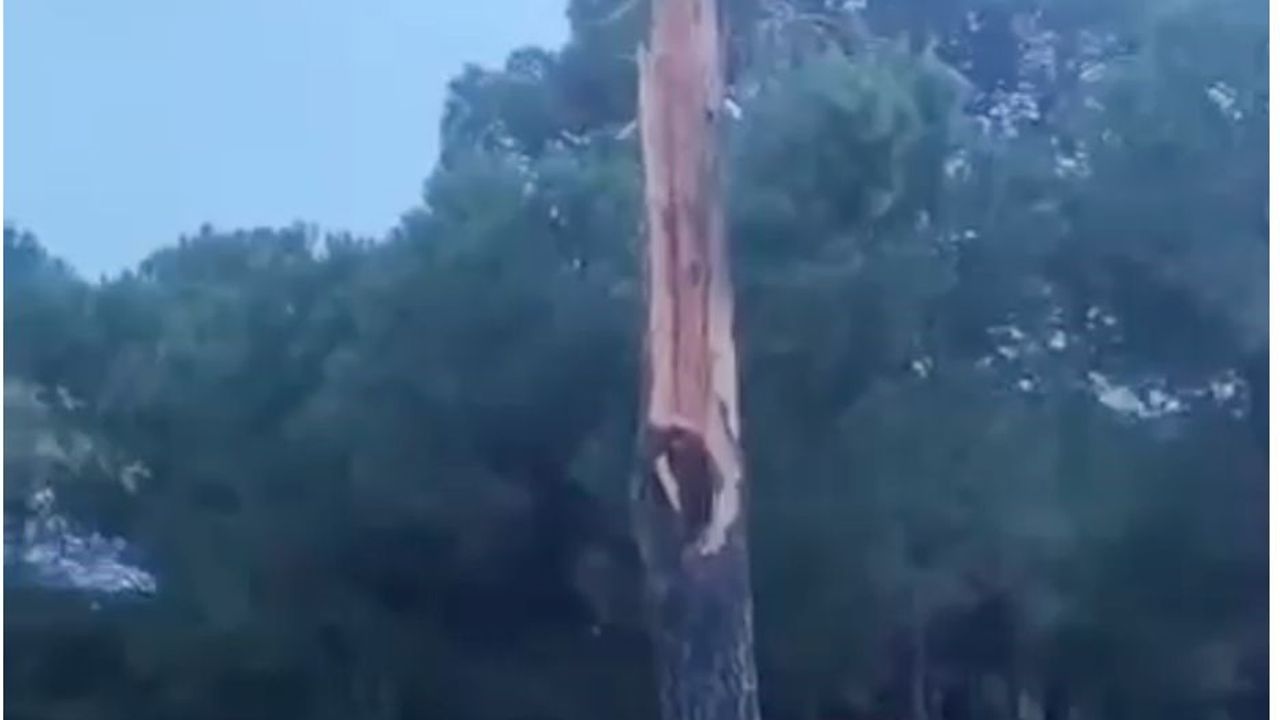 Yağış sırasında bölgede bulunan bir golf sahası içerisindeki ağaca yıldırım isabet etti. Büyük bir gürültüyle yıldırımın isabet ettiği ağaç gövdesinden parçalanarak çevreye dağıldı.