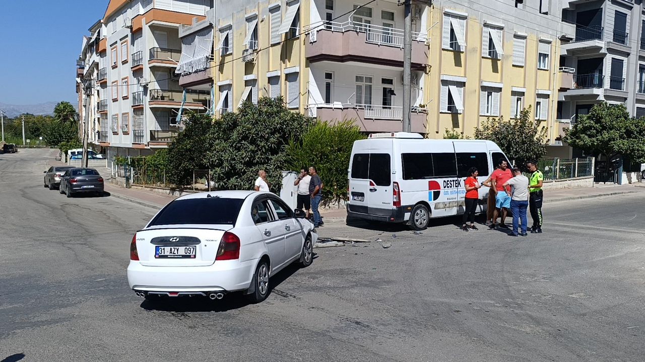 Antalya'nın Manavgat ilçesinde otomobil ile okul servis aracının çarpıştığı trafik kazasında biri çocuk 2 kişi yaralandı.