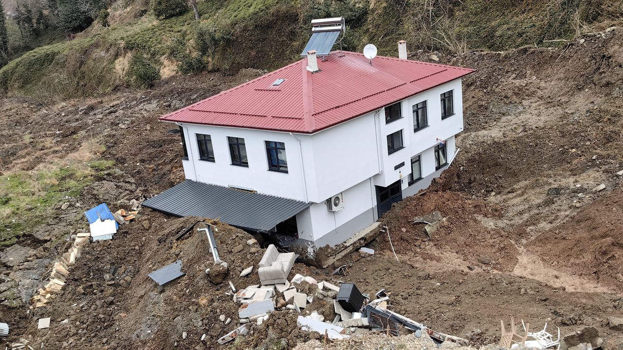 HOPAK Ekip Lideri Emin Üçüncü ise gece komşuların ihbarı üzerine kademeli olarak kaymaya başladığı bilgisini aldıklarını belirterek "Bilirkişi ekipleriyle birlikte incelemelerimiz devam ediyor. Yaklaşık 300 metrelik bir alanda heyelan olmuş durumda. İki katlı ev kademeli olarak bulunduğu yerden 50 metre heyelanla birlikte kaymış durumda. O esnada evin içinde kimsenin olmaması, can kaybını önlemiş oldu. Zeminin balçık şeklinde aktığını görüyoruz. Ekipler çalışmalarını yapıyor. Gerekli önlemler alınıyor, çalışmalarımız devam ediyor" diye konuştu.