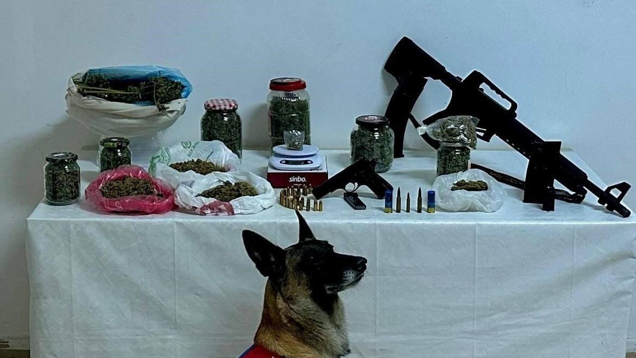 Yapılan aramalarda 2 kilo 970 gram kubar esrar, 442 gram skunk, 1 adet hassas terazi, 1 adet tabanca, 1 tabanca şarjörü, 27 adet 9 mm tabanca fişeği, 1 ruhsatsız av tüfeği, 2 av tüfeği şarjörü, 2 av tüfeği kartuşu, 2 adet 7.62 mm fişek, 1 adet 5.56 mm manevra fişeği ve 3 adet cep telefonu ele geçirildi.