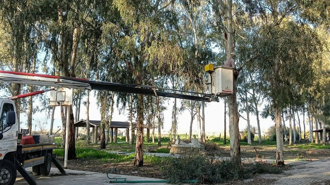 Tepecik Mesire Alanı, Efeler Belediyesi Park ve Bahçeler Müdürlüğü ekiplerinin mesaisiyle kapsamlı bir değişimden geçiyor. Şehrin gürültüsünden uzaklaşmak isteyen vatandaşların uğrak noktası olan mesire alanında çevre düzenlemesi gerçekleştiriliyor. Özellikle yüksek ağaçların elektrik tellerine temas ederek oluşturduğu hayati riskler, uzman ekiplerce kullanılan bom araçları sayesinde budandı. Yapılan budama çalışmalarıyla muhtemel kazaların önüne geçilirken, ağaçların sağlıklı gelişimi için gerekli bakımlar da tamamlandı.