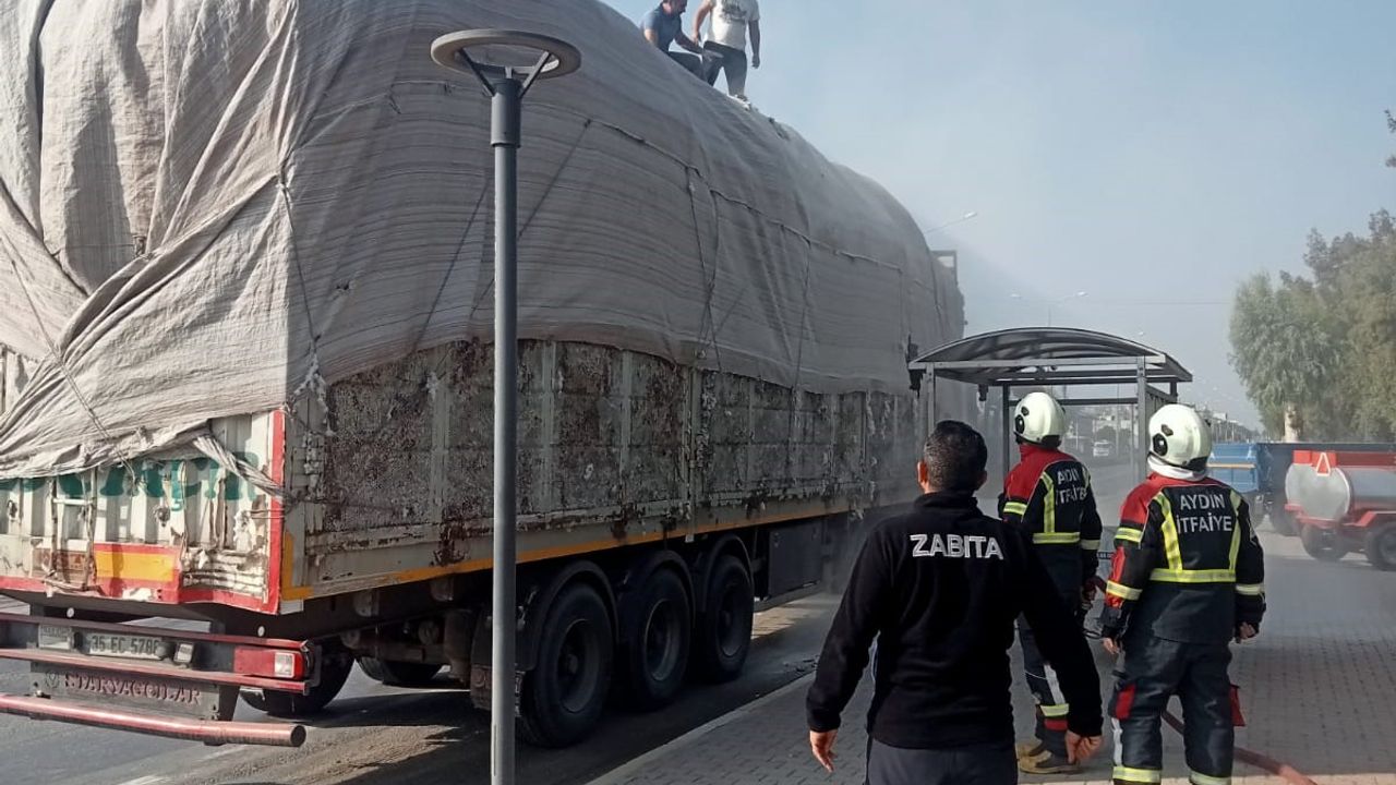 Olay, Germencik ilçesi Mesudiye Mahallesi'nde meydana geldi. Edinilen bilgiye göre pamuk yüklü tırın, dorse bölümünde henüz bilinmeyen bir nedenle yangın çıktı. Durumu fark eden araç sürücüsü durumu 112 Acil Çağrı Merkezi'ne bildirdi. İhbar üzerine bölgeye itfaiye ve polis ekipleri sevk edildi. Kısa sürede bölgeye gelen itfaiye ekipleri, yangını büyümeden söndürdü. Soğutma çalışmalarının ardından yangının çıkış nedeninin belirlenmesi için inceleme başlatıldı.