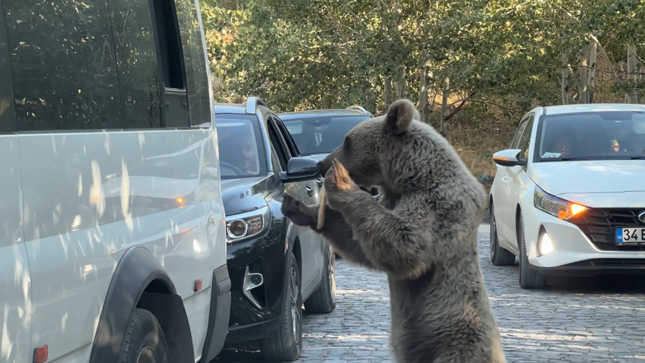 Nemrut Krater Gölü'ne aracıyla gezmeye giden bir vatandaş, göl çevresinde yiyecek arayan boz ayılarla karşılaştı. Aracın camından ayıya ekmek uzatmak isteyen vatandaş, bir anda ayının saldırısıyla karşılaştı. Saldırıdan son anda kurtulan kişi, çevrede bulunan vatandaşların cep telefonu kameralarına yansıdı.