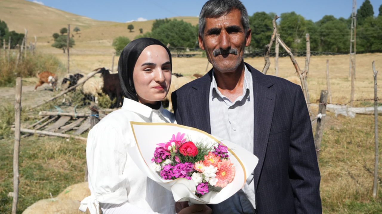 Muş'ta Bahçe köyünde hayvancılıkla geçimini sağlayan Mehmet Emin ve Gülşah Gülen çifti, kent merkezinde girdiği YKS sonrası 19 yaşındaki kızları Çimen'e sürpriz yapmış, ailenin yedi çocuğundan biri olan Çimen, babası tarafından sınav çıkışı çiçekle karşılanmıştı.