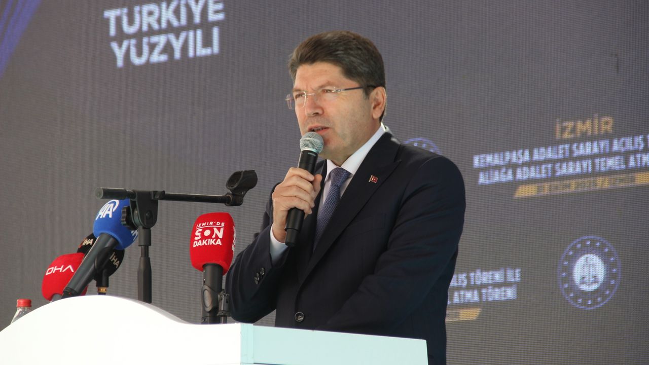 Daha önce yaklaşık 9 bin civarında hakim ve savcının olduğunu belirten Bakan Tunç, "Bugün 25 bin hakim ve savcımız var. Bunların hepsini bir araya getirdiğimizde, özellikle üç dereceli yargı sistemi, istinafa geçmemizle beraber istinaftaki dosya yığılmasını önlemeye yönelik birinci sınıf hakimlerimizin sayısı arttıkça orada da dairelerimizin sayısını artırarak son iki yılda 139 yeni dairenin kurulmasını sağladık. İstinaftaki o yoğunlaşmayı bir an önce çözmek ve vatandaşlarımızın haklarına daha çabuk kavuşabilmeleri için çalışmalarımızı sürdürüyoruz. Türkiye genelinde sadece 78 adliye sarayı vardı; şu anda 387, şimdi 388 oldu. Yatırım programımızda 68 adliye binamız var; 31'i inşaat aşamasında. İzmir Aliağa görüntülerini görmüştünüz. Bugün açılışla beraber onun temel atmasını da buradan uzaktan gerçekleştirmiş olacağız. İnşallah kısa süre içerisinde Aliağa Adalet binamızın da temel atma töreninde sizlerle bir arada oluruz. Bergama, Çeşme, Karşıyaka, Kınık, Kiraz, Menderes, Selçuk ilçelerimizin de adalet binası ihtiyacı olduğunu biliyoruz. Daha kaliteli mekanlara ihtiyaç var diyoruz. Bu ilçelerimizde de inşallah 2026 yatırım programına önce etüt proje, sonrasında yapım aşamasına kadar süreçleri takip ederek bu ilçelerimizin de adalet binaları ihtiyacını karşılamak için çalışmalarımızı sürdüreceğiz" dedi.
