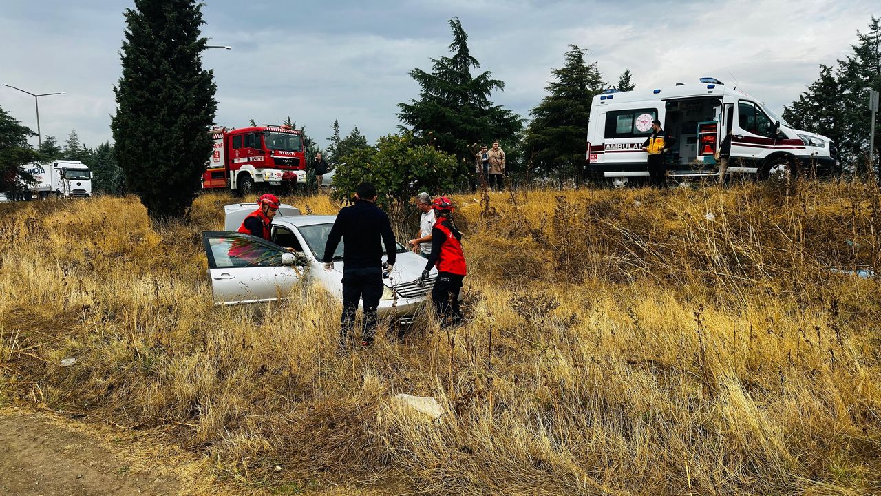 Balıkesir'de Kepsut yönüne giden otomobil yağıştan dolayı kayarak, şarampole uçtu.