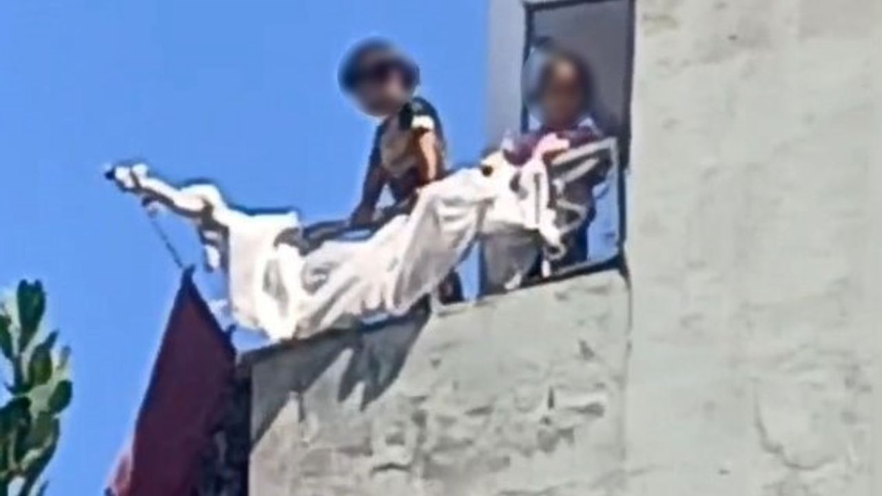 Gazipaşa Mahallesi’nde, 5 katlı bir binanın 4. katındaki balkondan sarkan küçük çocuklar görenlere korku dolu anlar yaşattı. Balkonda tehlikeli şekilde oynayan ve demir korkuluklardan sarkan çocuklar, çevrede bulunanların yüreğini ağza getirdi. Durumu fark eden bir vatandaş, çocuklara seslenerek uyardı. Uyarının ardından çocuklar hızla içeri girdi.
