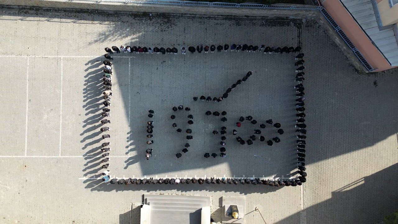 Okul bahçesinde bir araya gelen öğrenciler, öğretmenlerinin rehberliğinde Atatürk’ün vefat ettiği yıl olan 1938 tarihini ve yelkovan figürünü birlikte oluşturdular. Öğrencilerin oluşturduğu yelkovan figürü, saat 09.00’ı gösterecek şekilde sabitlendi. Tüm Türkiye'de hayatın durduğu ve sirenlerin çaldığı dakikalarda ise yelkovan figürü 09.05’e hareket ettirilerek, Atatürk’ün hayata veda ettiği ana dikkat çekildi.