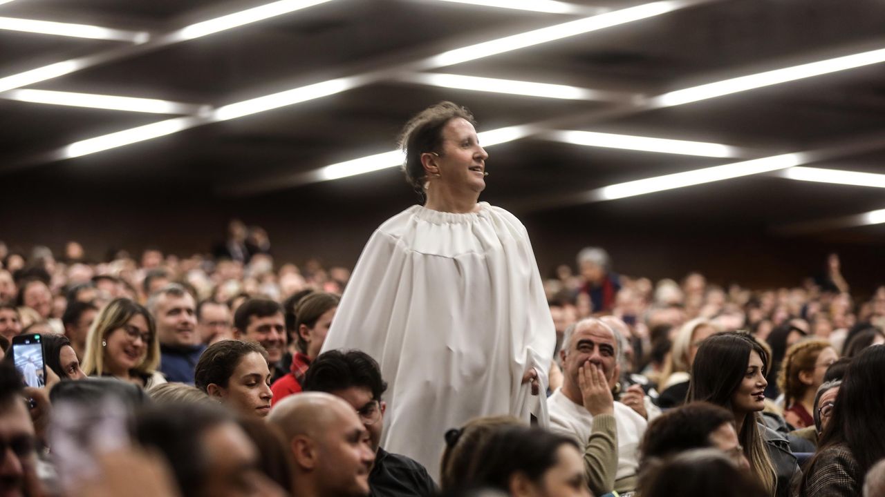 Kalaslarından dekor, heveslerinden oyun yapmak üzere yola çıkan iki cüretkâr oyuncunun, William Shakespeare’in başyapıtı Hamlet’i sahnelemeye çalışmasını konu alan oyun, mizah dolu anlatımıyla seyircilere keyifli bir akşam yaşattı. Hem güldüren hem de düşündüren yapısıyla dikkat çeken “Bir Baba Hamlet”, iki perde ve 120 dakika boyunca izleyicilerin ilgisini diri tutmayı başardı. Performanslarıyla sahneye damga vuran Çoruh ve Ayrık, salondaki tiyatroseverlerden tam not aldı.