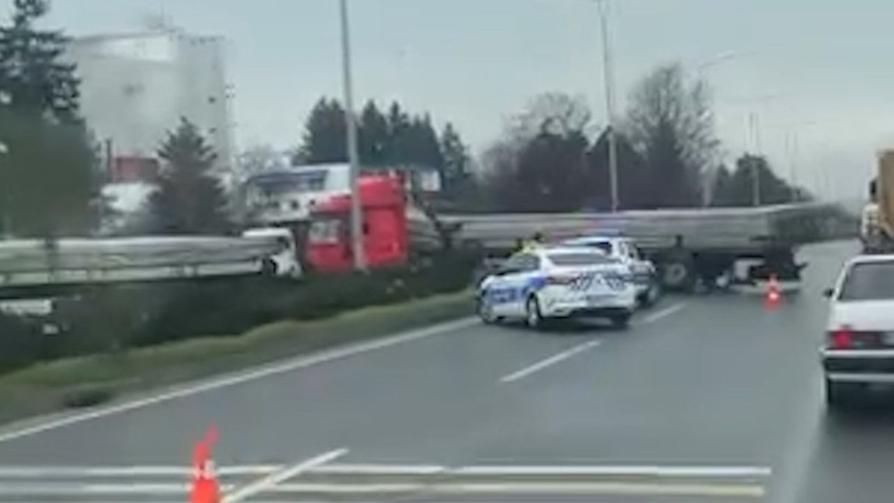 Bolu'da D-100 kara yolunda sürücüsünün kontrolünden çıkarak makaslayan tır nedeniyle trafik uzun süre aksadı. Kazada şans eseri yaralanan olmadı.