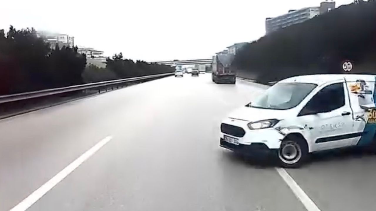 Herkesin yüreğini ağzına getiren anlar, bir kamyonun araç içi kamerasına saniye saniye yansıdı. Mudanya çıkış kavşağında seyir halindeki bir ticari kamyonet, yağmur sebebiyle ıslak olan asfaltta direksiyon hakimiyetini kaybedince bariyerlere çarptı. Daha sonra kendi ekseni etrafında dönmeye başlayan kamyonet, yol ortasında dönerek durabildi. Kayda alan kamyon sürücüsü ise ani bir manevra yaparak kamyonete çarpmaktan son anda kurtuldu. Muhtemel bir zincirleme kazanın önüne geçen bu refleks, faciayı engelledi.