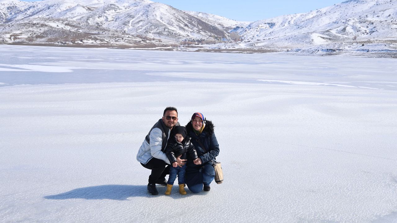 Çeşitli illerden kış tatili için Sivas’a geldiklerini belirtenler buz tutan gölün yüzeyinde yürüme fırsatı bularak tarifsiz bir deneyim yaşadıklarını dile getirdiler.