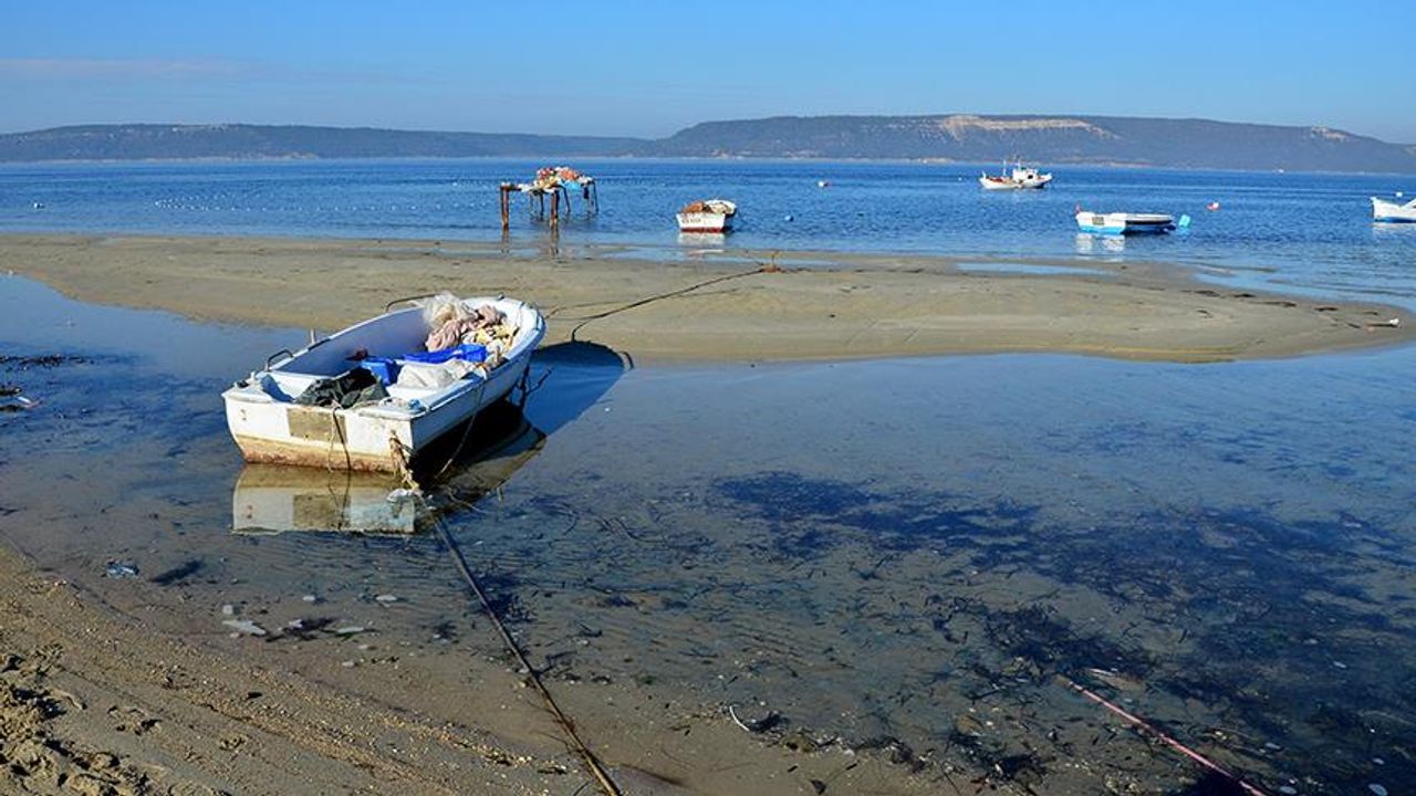 Çanakkale'de gelgit olaylarına bağlı olarak deniz suyu çekildi, Dardanos sahilinde kıyıdan açığa doğru yaklaşık 10 metrelik bölümde bazı tekneler karaya oturdu.