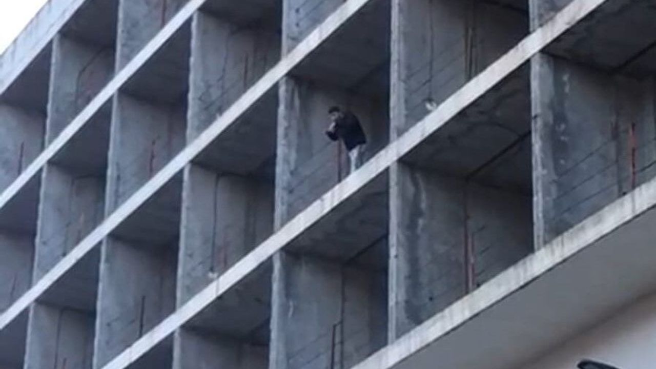 Sürücü, dört katlı bir inşaatın çatısına çıktı