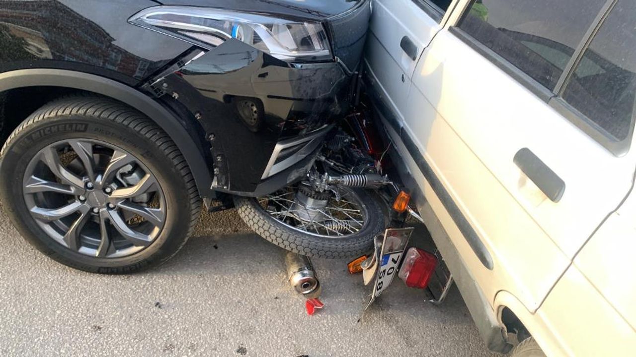 Kaza, Yunuskent Mahallesi Alparslan Türkeş Bulvarı üzerindeki kavşakta meydana geldi. Edinilen bilgiye göre, F.K. yönetimindeki 70 ABG 735 plakalı cip, O.G.’nin (28) kullandığı 70 AP 587 plakalı motosiklet ile kontrolsüz kavşakta çarpıştı. Kaza sırasında motosikletinden atlayan sürücü canını son anda kurtarırken motor cipin altında kaldı. Altına aldığı motosikleti sürükleyen cip, daha sonra kavşakta dönüş yapmak için bekleyen A.E. idaresindeki 07 GVZ 22 plakalı otomobile çarparak durabildi. İki aracın arasında kalan motosiklet ise kullanılamaz hale geldi. İhbar üzerine olay yerine sağlık ve polis ekipleri sevk edildi. Kazayı hafif sıyrıklarla atlatan motosiklet sürücüsü tedbir amaçlı ambulansla Karaman Eğitim ve Araştırma Hastanesi’ne kaldırıldı.