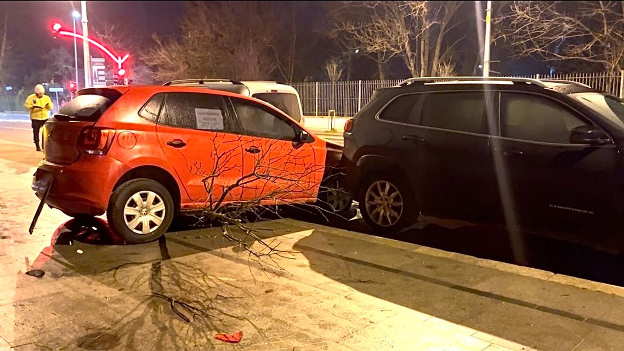 Kaza sonrası savrulan hafif ticari araç park halindeki araçlara çarptı. 4 aracın karıştığı kazada 1 kişi hafif yaralandı.