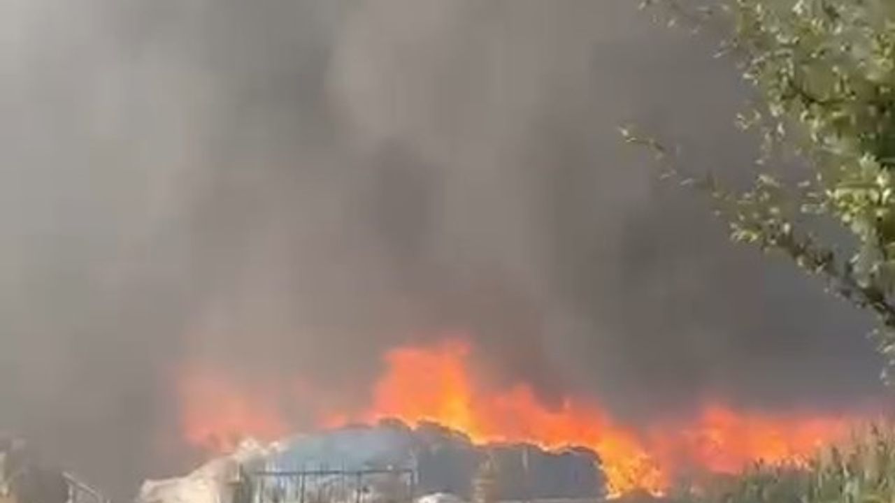 Yangında gökyüzü siyah dumanlarla kaplanırken, olay yerine gelen itfaiye ekiplerinin yangını kontrol altına almak için çalışmaları sürüyor.