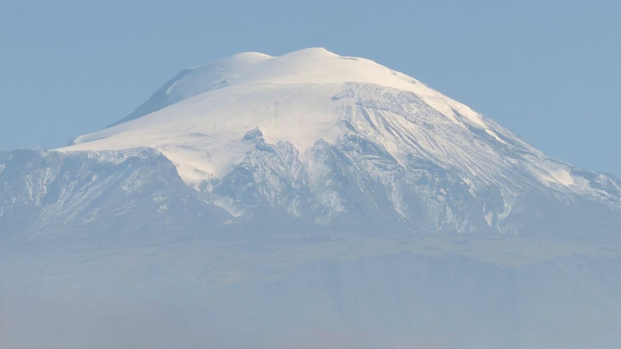 Yağan karla beyaz gelinliğini giyen Ağrı Dağı, Iğdır ovasının yeşili ve gökyüzünün maviliği ile bütünleşerek görenleri kendine hayran bıraktı.