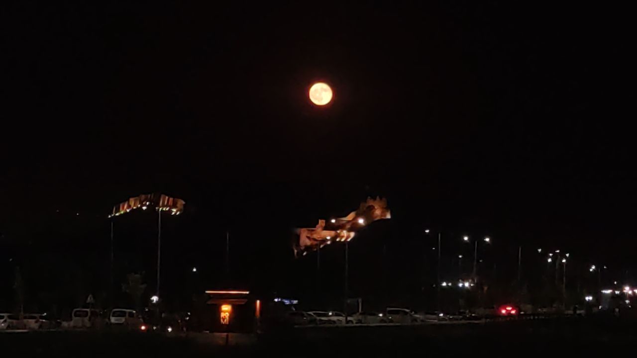 Van Gölü'nün kıyısında yükselen tarihi Van Kalesi, dolunayda hayran bırakan bir görüntüye sahne oldu. Gece gökyüzünde beliren dolunay, kalenin tarihi siluetiyle birleşince ortaya kartpostallık manzaralar çıktı. Fotoğraf tutkunlarının ve doğaseverlerin ilgisini çeken bu eşsiz anlar, Vanlılara görsel bir şölen sundu. Yüzlerce yıl öncesine dayanan geçmişiyle bölgenin simgelerinden biri olan Van Kalesi, dolunay ışığında adeta masalsı bir atmosfere büründü. Gökyüzünde beliren dolunayın kalenin taş duvarlarıyla oluşturduğu uyum sosyal medyada da büyük ilgi gördü. Gecenin sessizliğiyle bütünleşen bu görüntüler, izleyenleri hem tarihle hem doğayla baş başa bıraktı.