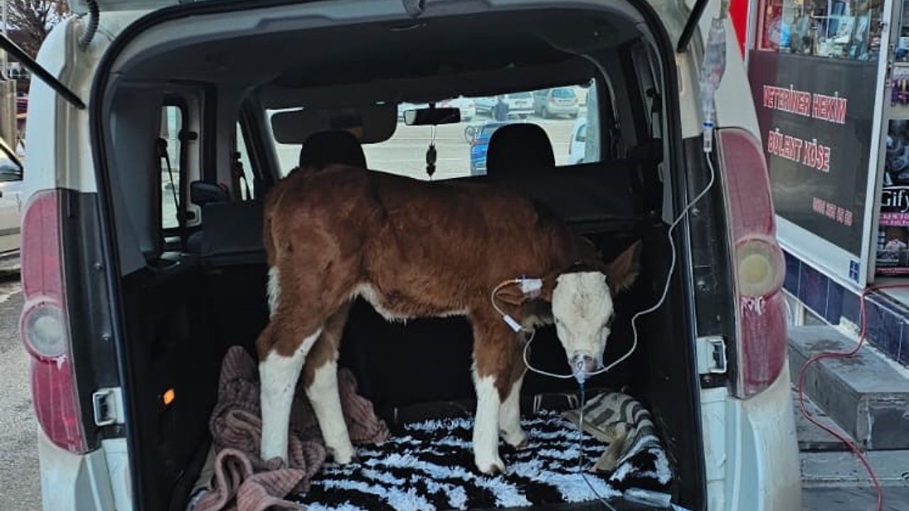 Besici, buzağıyı otomobiliyle ilçe merkezideki bir veterinere götürdü. Veteriner hekim Bülent Köse, zor durumdaki buzağıya acil müdahaleyi aracın bagajında yaptı. Damar yolu açılıp ilaç verilen buzağıya maske takılarak oksijen verildi. Buzağının acil müdahalenin ardından şifa bulduğu öğrenildi.