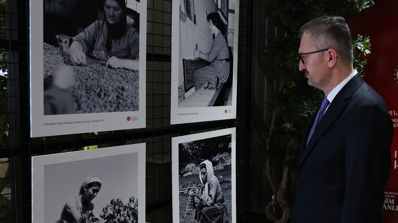Cumhurbaşkanlığı İletişim Başkanlığı Prof. Dr. Burhanettin Duran'ın açılışını yaptığı sergide çay hasadı yapan kadınlardan, seramik fabrikasında çalışan kadınlara, Ankara Radyosu'nda yayın yapan kadın spikerden Türkiye'nin ilk kadın taksi şoförüne, eğitimden sanata, kamusal alandan gündelik yaşama kadar hayata dokunan kadınlarımızın arşiv fotoğraflarına yer veriliyor. Cumhurbaşkanlığı İletişim Başkanlığı dijital görsel arşivinden derlenen siyah beyaz fotoğraflardan oluşan sergide 1934-1986 yılları arasında kadınların yaşamın farklı alanlarında iz bıraktığı anlara tanıklık eden 41 fotoğraf karesi yer alıyor. Serginin açılış programında konuşan İletişim Başkanı Duran, "8 Mart Dünya Kadınlar Günü vesilesiyle düzenlediğimiz bu sergide sizlerle bir arada olmaktan memnuniyet duyuyorum. Elbette bugün sadece bir takvim günü değil. Kadın emeğinin, kadın aklını, kadın iradesini ve kadınların bu ülkenin geçmişindeki ve geleceğindeki üstlendiği belirleyici rolü güçlü bir biçimde ortaya koymak için toplandık. Sergimizde yer alan görseller, kadın emeğinin tarihsel dönüşümünü ve hayatın her alanında üstlendikleri sorumluluğu açıkça göstermektedir. Şunu özellikle ifade etmek isterim. Kadının onuru, emeği ve toplumsal kıymeti bizim için modern bir hak arayışının ötesinde medeniyetimizin temel değerleri arasında yer alan köklü bir anlayışın ifadesidir" diye konuştu.