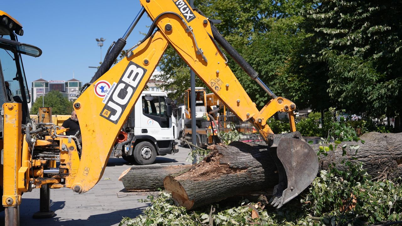 Kocaeli'de geçtiğimiz günlerde bir ağacın parktaki vatandaşların üzerine devrilmesi sonucu 1 kişi hayatını kaybetmişti. Düzce Belediyesi de kent merkezinde benzer bir olay yaşanmaması için Millet Bahçesi'nde kuruyan ve çürüyen ıhlamur ağacını kaldırdı.