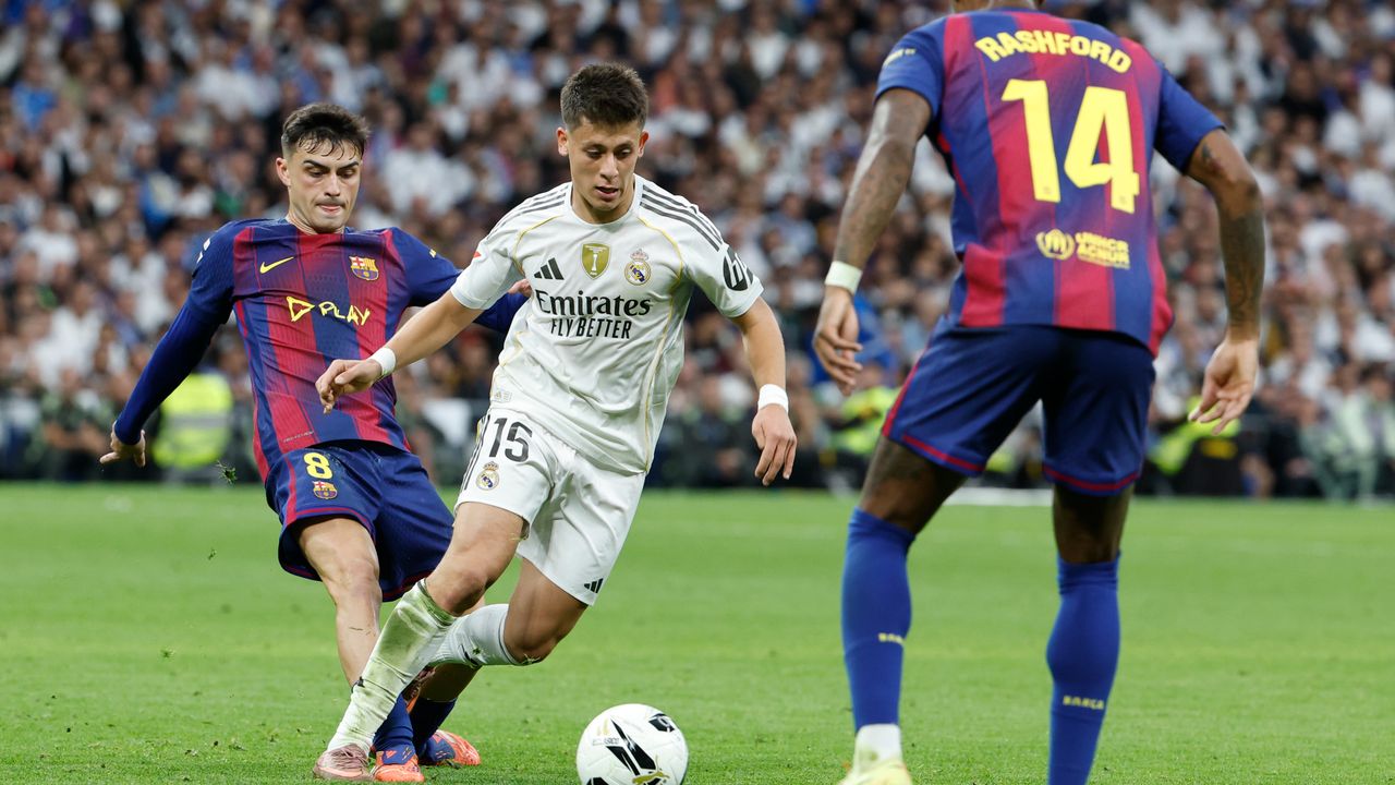 38. dakikada Fermin Lopez ile Barcelona eşitliği yakalarken, 43. dakikada Bellingham'ın golüyle ev sahibi ekip soyunma odasına 2-1 önde girdi.