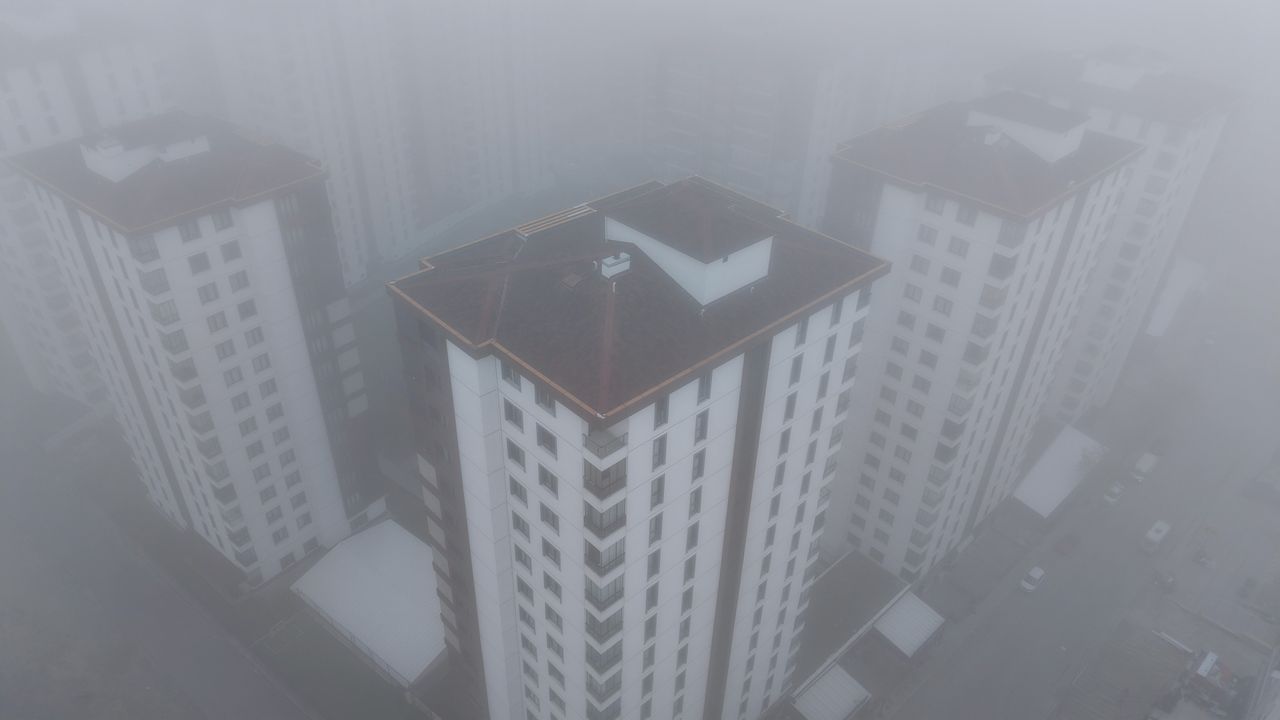 Elazığ’da yerden yaklaşık 200 metre yükseklikten şehir, yoğun sis nedeniyle neredeyse tamamen kayboldu.