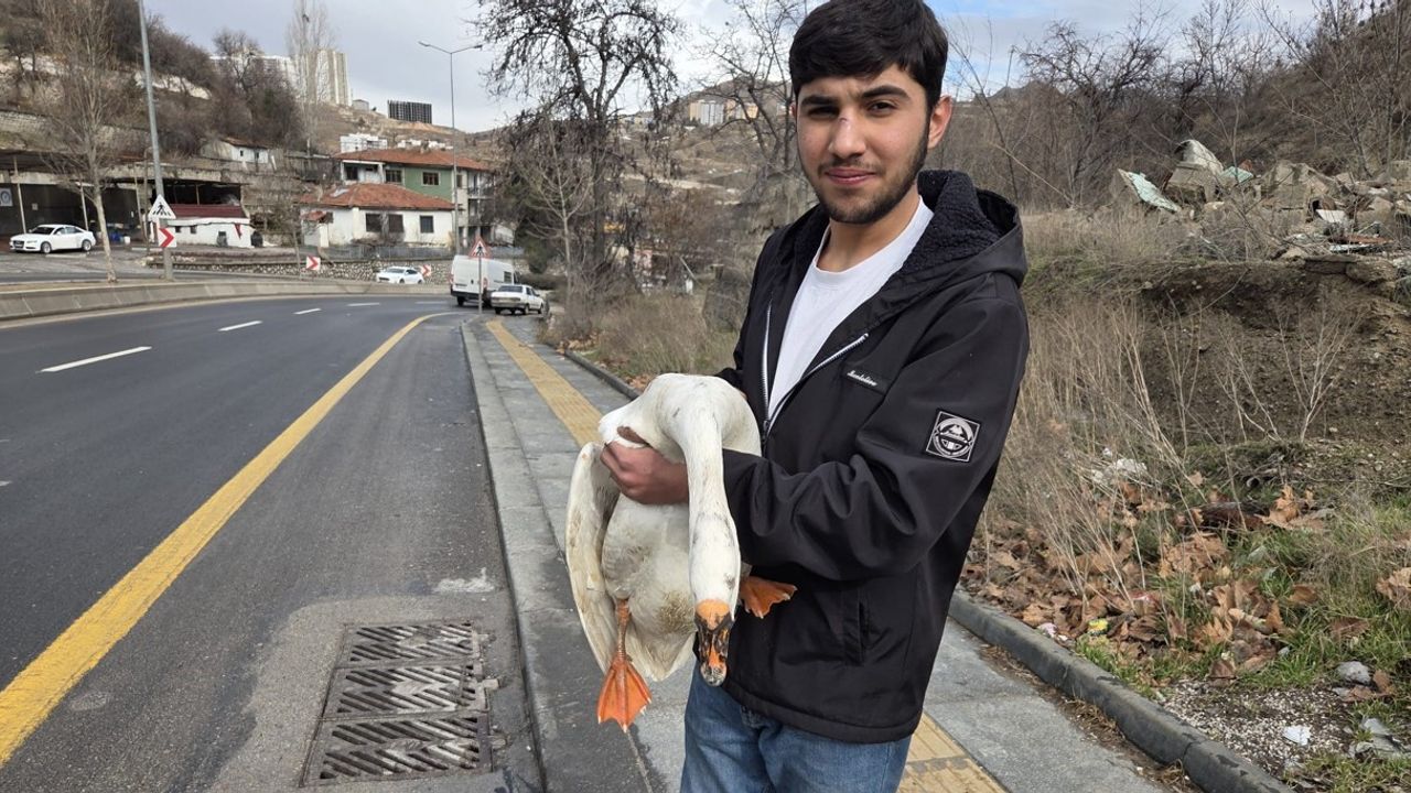 Sürücülerin de zor anlar yaşamasına neden olan kaz, çevredeki vatandaşların dakikalar süren uğraşı sonucu yakalandı. Yakalanan kaz sahibine teslim edilirken, kendisini yakalamaya çalışan kişilerden kaçmaya çalışan kazın sevimli halleri kameralara yansıdı.