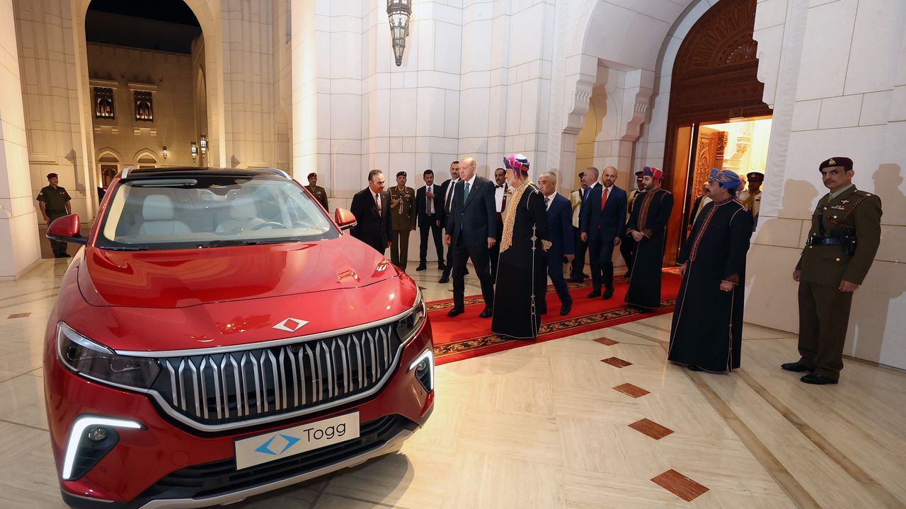 Cumhurbaşkanı Erdoğan, Umman Sultanı Heysem bin Tarık bin Teymur El Said ile bir araya gelmesinin ardından kendisine kırmızı renkli Togg aracı hediye etti.