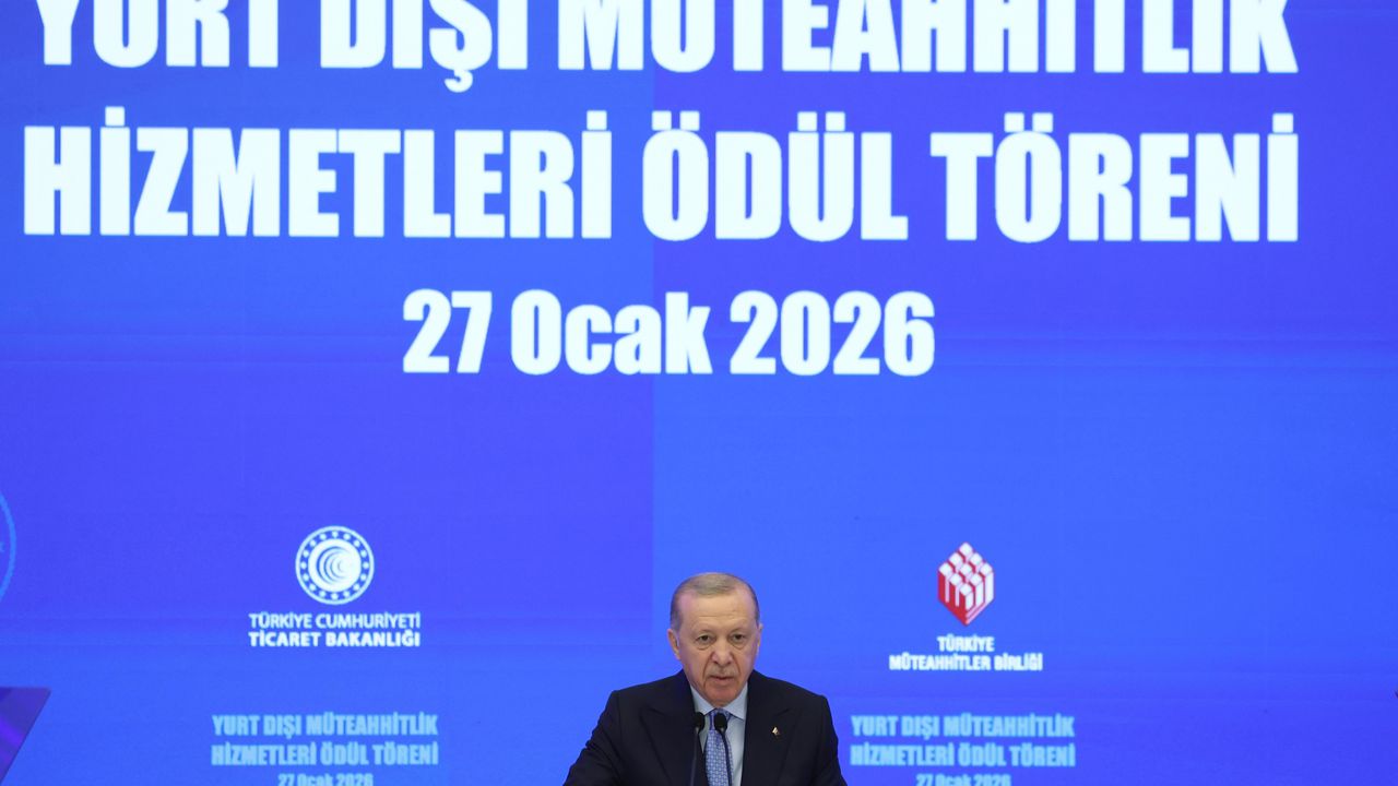 Ekonomideki bu olumlu görünümün doğal olarak ticaret performanslarına da yansıdığını belirten Cumhurbaşkanı Erdoğan, "Küresel talebin zayıfladığı ve korumacılığın arttığı 2025 yılında Türkiye üretim gücünü ve rekabetçiliğini koruyarak mal ihracatında 273,4 milyar dolarla Cumhuriyet tarihinin rekorunu kırmıştır. 2025 yılında ihracatımız bir önceki yıla kıyasla net 11,7 milyar dolar artış göstermiştir. Hizmetler ihracatında da hamdolsun hedeflerimizin ötesine geçtik. 2024 yılında 115 milyar dolar olan hizmet ihracatı hedefimizi 117,2 milyar dolarla geride bırakmıştık. 2025 yılında 121 milyar dolar hizmet ihracatı hedefimize yıllıklandırılmış olarak daha Eylül ayında ulaştık. Hizmetler ihracatımızın 2025 yılı hedefimizi aşarak inşallah 122,5 milyar doları bulacağına inanıyoruz. Hizmetler sektöründeki başarılarımıza imza atan lojistik ve taşımacılıktan turizme, bilişim ve yazılımdan dizi ve film yapımlarına, eğitimden sağlık turizmine, müteahhitlikten fuarcılık çalışmalarına kadar çeşitli hizmet sektörlerinde faaliyet gösteren tüm ihracatçılarımızı kutluyorum. Her birinize müteşekkirim. Her birinizi yürekten tebrik ediyorum. Geçtiğimiz sene 2025 yılı için mal ve hizmet ihracatına yönelik hedefimizi 390 milyar dolar olarak paylaşmıştım. Bugün Bakanlığımızın tahminlerine göre mal ve hizmet ihracatımızın 396,5 milyar dolarla bu hedefi aştığını memnuniyetle ifade etmek isterim. Bu başarıda emeği geçen tüm paydaşlarımıza, ihracatçılarımıza, üreticilerimize, yurtdışı müteahhitlik ve teknik müşavirlik sektöründe faaliyet gösteren tüm firmalarımıza bir kez daha ülkem ve milletim adına şükranlarımı sunuyorum" açıklamasında bulundu.