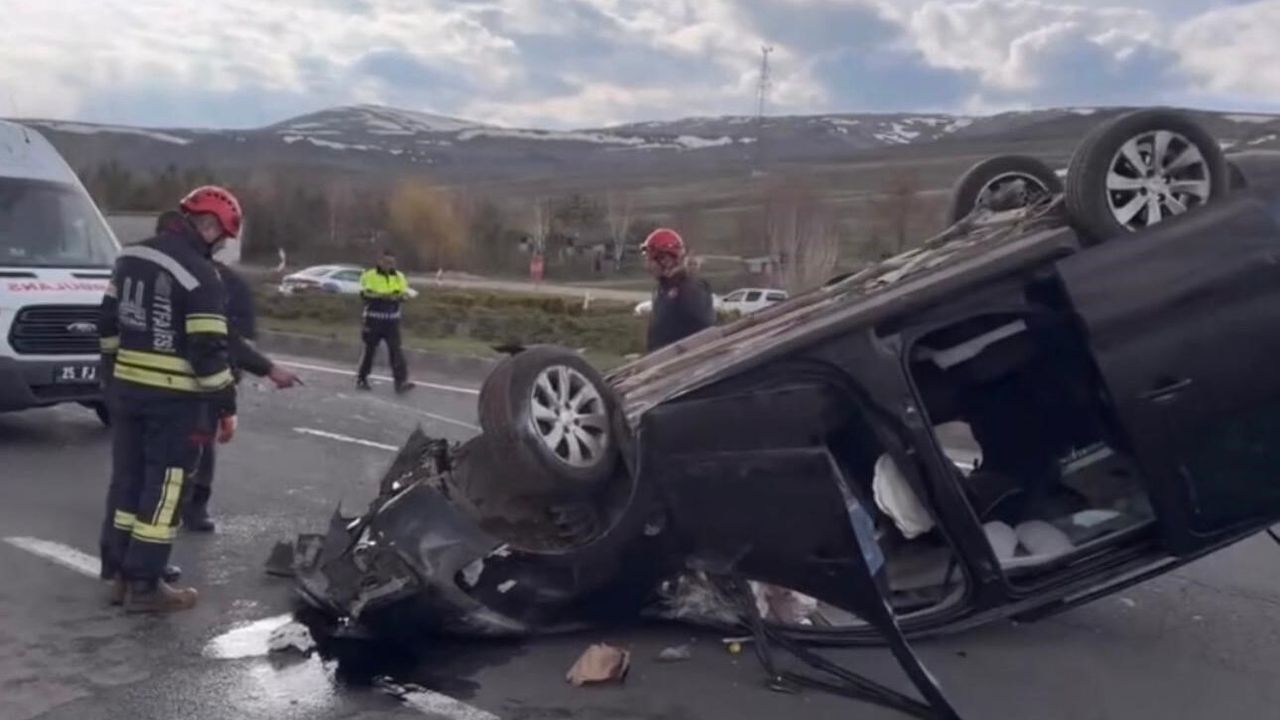 Erzurum istikametinden seyir halinde olan bir araç ile kavşaktan ana yola çıkan otomobilin çarpışması sonucu meydana gelen kazada araçlardan biri takla atarak ters döndü.