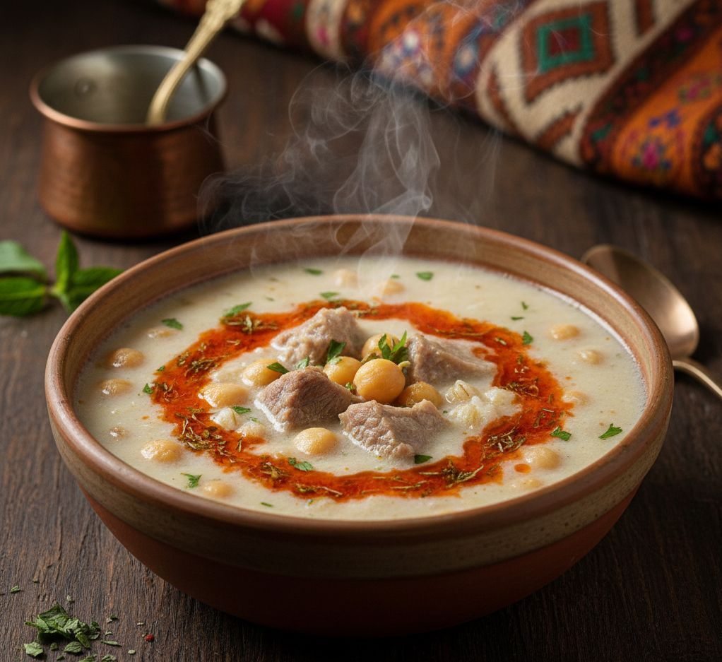 Kuzu eti, nohut, buğday ve yoğurtla hazırlanan bu yoğun kıvamlı çorba, aslında tek başına bir ana yemek kadar doyurucudur. Üzerine yakılan naneli yağ ile servis edilir.