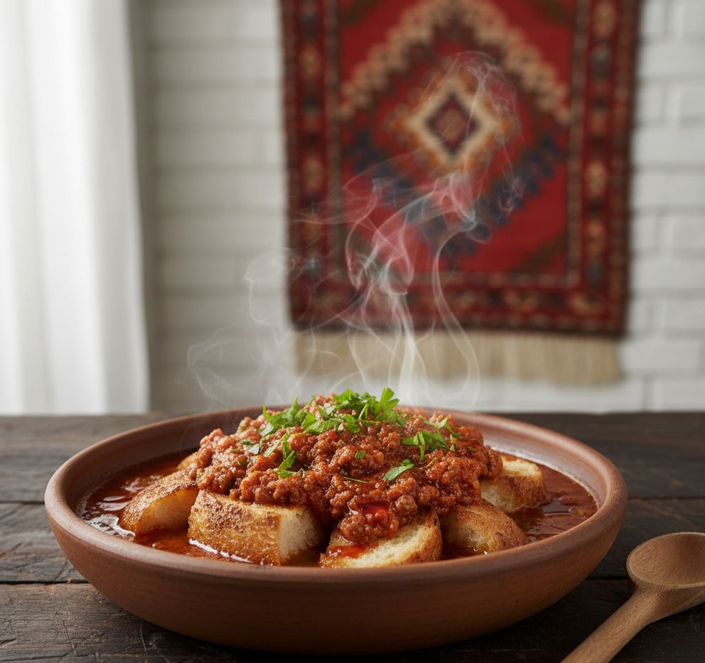 Çemenli kıyma sosuyla hazırlanan ve bayat ekmeklerin üzerine dökülerek servis edilen bu yemek, Anadolu’nun israf etmeme kültürünün en lezzetli örneklerinden biridir.