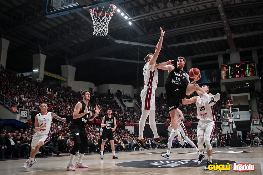Müsabaka öncesi Kahramanmaraş merkezli depremlerde hayatını kaybedenlerin hatırasına saygı duruşunda bulunuldu. Milliler FIBA 2023 Dünya Kupası Elemeleri ikinci turunda Letonya ile oynadığı müsabakasının gelirleri, AFAD iş birliğiyle devam eden konteyner kent çalışmalarına bağışlanacak.