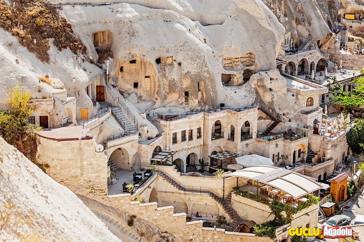Nurgül Yeşilçay ile Özcan Deniz’i Asmalı Konak’ta izleyen kaç kişi var? Ben izlemedim ama bir dizi meşhur ederse bir yeri böyle ediyor işte! Nasıl ki Cumalıkızık Kınalı Kar ile ünlenmiş, Ürgüp de işte bu konak ile ünlenmiş.