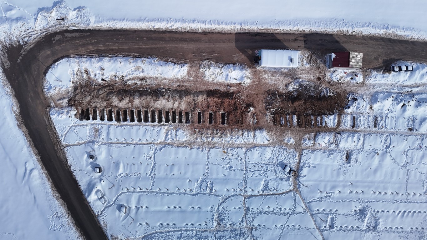 Yaklaşık 100 bin mezarın bulunduğu mezarlık alanı tamamen beyaza bürünürken, mezar taşları da kara gömüldü.