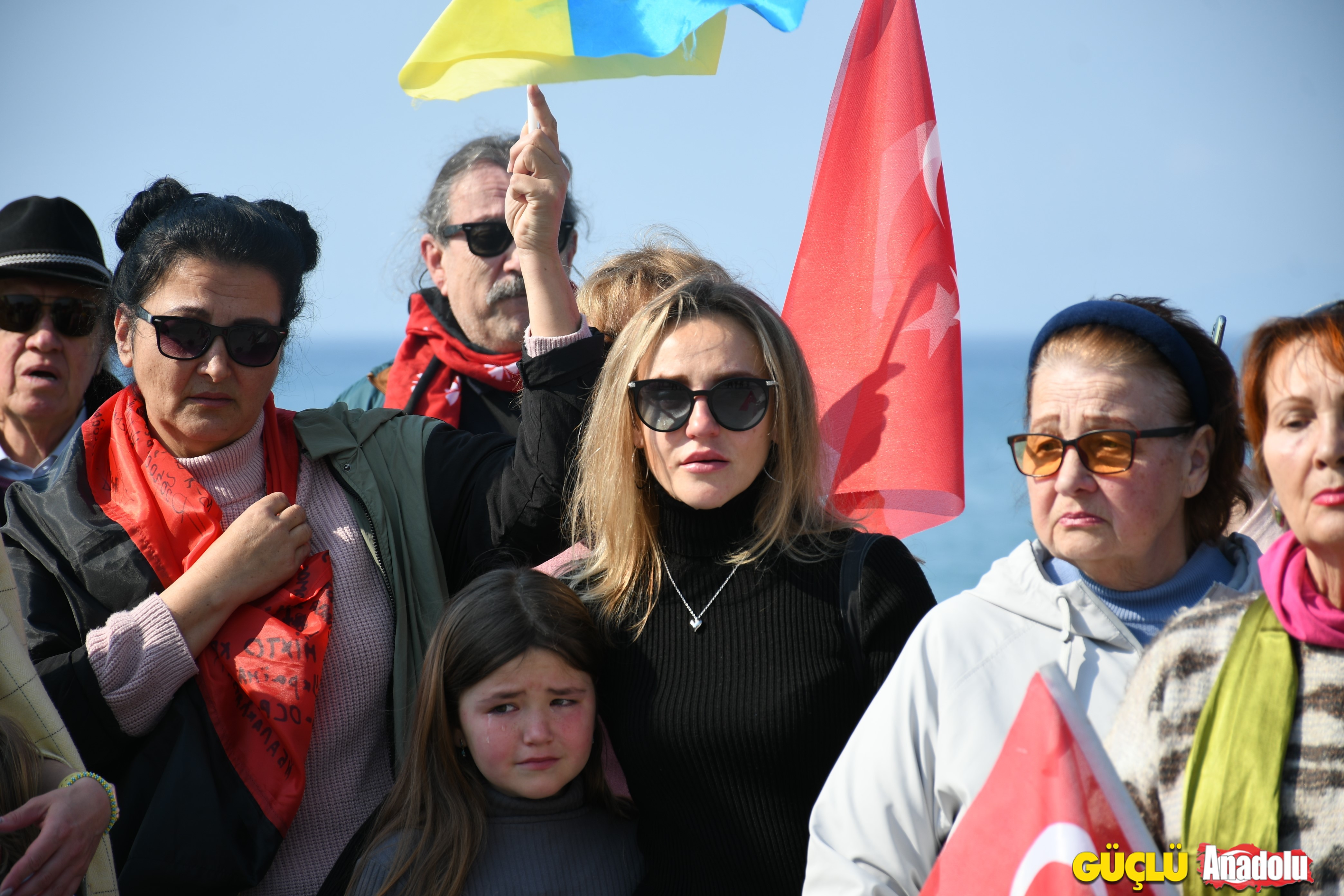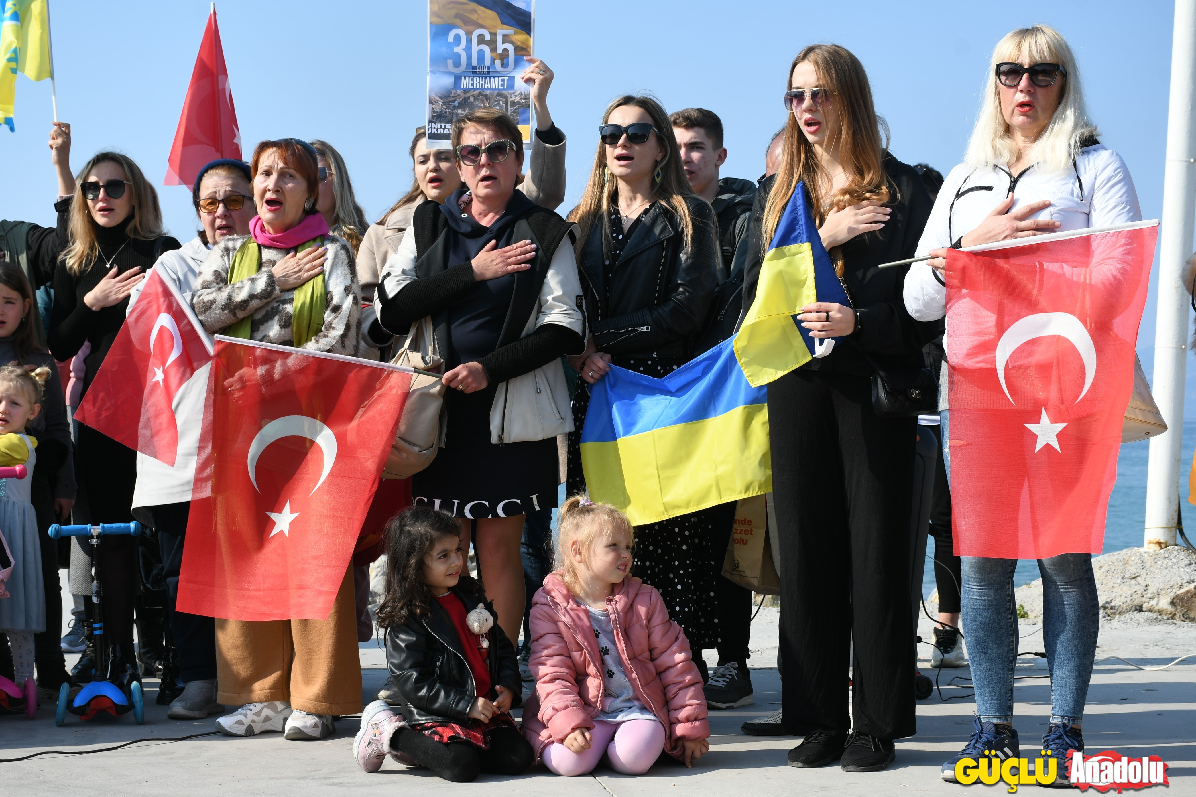 Öte yandan Kuşadası’nda yaşayan Ukraynalılar, savaşın birinci yılında İsmail Cem Dostluk ve Barış Meydanı’nda bir araya gelerek basın açıklaması yaptı. Ellerinde İngilizce, Rusça, Ukraynaca ve Türkçe dövizler taşıyan grup, önce ülkelerinde hayatını kaybeden asker ve siviller ile Kahramanmaraş merkezli meydana gelen depremlerde ölenler için saygı duruşunda bulundu. Daha sonra Ukrayna Ulusal Marşı ve İstiklal Marşı okundu. Basın açıklamasına Kuşadası Belediye Başkan Yardımcısı Oğuzhan Turan, sivil toplum kuruluşları ve Türk vatandaşları da katıldı.