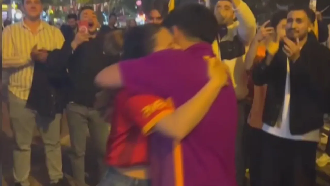 Galatasaray’ın 2024-2025 sezonu Süper Lig şampiyonluğunu kutladığı coşkulu anlarda, sarı-kırmızılı taraftarlar sokakları doldururken, genç bir Galatasaray taraftarı sevdiği kadına evlenme teklifi etti.