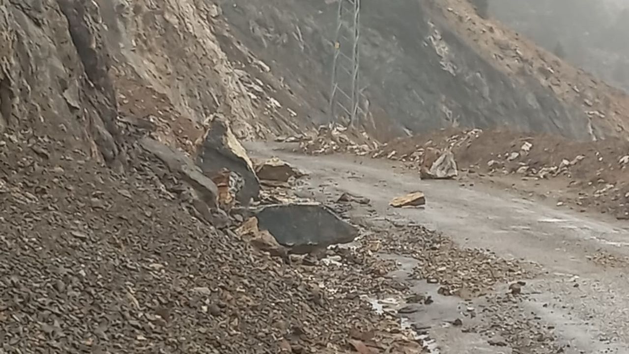 Gölbaşı ilçesine bağlı Hamzalar köyünde akşam saatlerinde etkili olan sağanak yağış, heyelana neden oldu. Yağış sırasında dağdan kopan kaya parçaları karayoluna düştü.