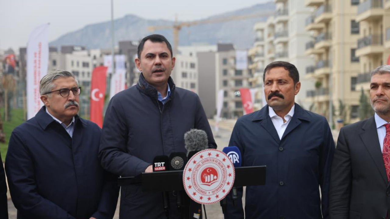 Yıl sonu itibariyle 454 bin konuttan fazlasını deprem bölgesinde hak sahiplerine teslim etmeyi planlandıklarını belirten Bakan Kurum, "Depremin ilk anından itibaren; şehrimizin yaralarını sarmak için gece gündüz demeden çalışıyoruz. Saatte 23, günde 550 konut üreterek dünyada eşi benzeri görülmemiş bir inşa seferberliği yürütüyoruz. Hamdolsun, ortaya koyduğumuz kararlılık sayesinde bugün; 11 ilimizin tamamında artık, neredeyse tüm evlerimizde ışıklar yanmaya başladı. Son anahtarları teslim ediyor, kalan son ailelerimizi de yeni yuvalarıyla, mutlu, huzurlu, güvenli gelecekleriyle buluşturuyoruz. Bildiğiniz gibi geçtiğimiz ay Adıyaman’da, Cumhurbaşkanımızın teşrifleriyle 350 bininci konutu, hak sahipleriyle buluşturmanın mutluluğunu yaşamıştık. İnşallah bu ay sonunda Hatay’da; 153 bin konutumuzun tamamını afetzede kardeşlerimize teslim etmiş olacak; buradaki sözlerimizi tamamen yerine getirmiş olacağız. Hemen ardından da 27 Aralık’ta; Cumhurbaşkanımızın teşrifleriyle, son anahtar teslim törenimizi büyük bir gurur ve huzurla yapacağız. Deprem bölgesindeki 11 ilimizde; yılsonu hedefimiz olan 453 bin konutumuzun çok daha fazlasını sahiplerine kavuşturacağız" dedi.